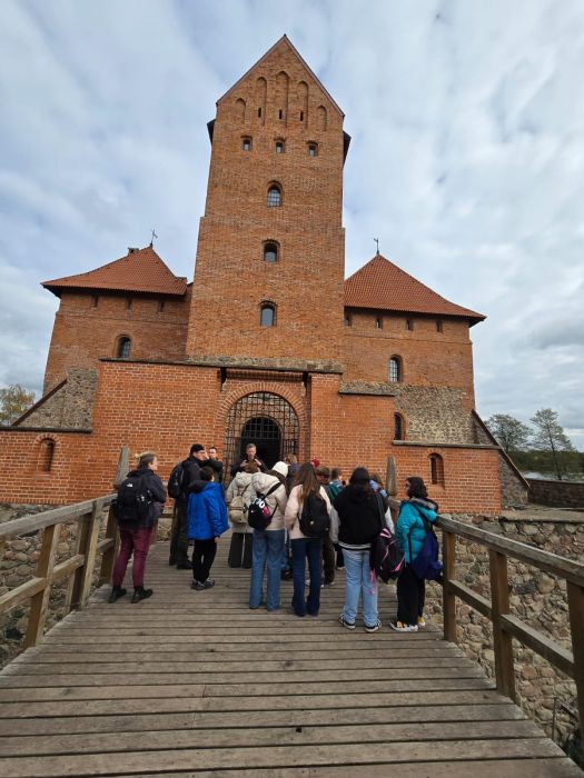 Am Donnerstag hieß es schon wieder Abschied nehmen von den Gasteltern und von den litauischen Schülerinnen und Schülern. Nachdem uns der Schulleiter Vladas Klasavicius unsere Zertifikate überreicht hatte, fuhren wir mit dem Schulbus in Richtung Vilnius. Unterwegs stiegen wir auf den Aussichtsturm in Bristonas und bestaunten ein letztes Mal die herbstlichen Wälder, besichtigten die Burg Trakai und am Ende den Königlichen Palast in Vilnius. Nun verabschiedeten wir uns auch von den türkischen und italienischen Kindern und Kolleg*innen, um den letzten Abend in Vilnius zu verbringen. Wir kehrten am Freitag mit vielen neuen Eindrücken, Tänzen, Wissen, Freundschaften nach Berlin zurück. Hier ist der Bericht über unseren Aufenthalt auf der Seite von Ryto: https://rytomok.lt/lt/naujienos/projektine-veikla/2025/10/ryto-progimnazijoje-sveciavosi-erasmus-projekto-partneriai-2025-10-17-09-05