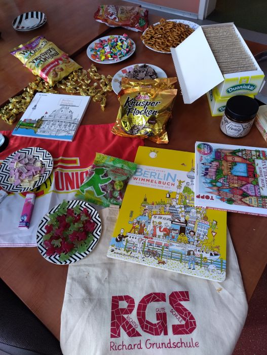 Nun war es an uns, unser Land, unsere Stadt und unsere Musik und Tänze den Gastgeber*innen und den anderen Gästen zu präsentieren. Von der Richard-Schule gab es Techno, Nina Chuba und GReeeN. Auch die Cultural Desk jedes Landes durfte nicht fehlen. Es folgte eine gemeinsame Besichtigung der Schule, wir bestaunten zum Beispiel die vielen Computerarbeitsplätze, den wunderbaren Ruheraum und den Raum für die Inklusion. Den Abschluss bildete ein Rundgang durch Marijampole.
